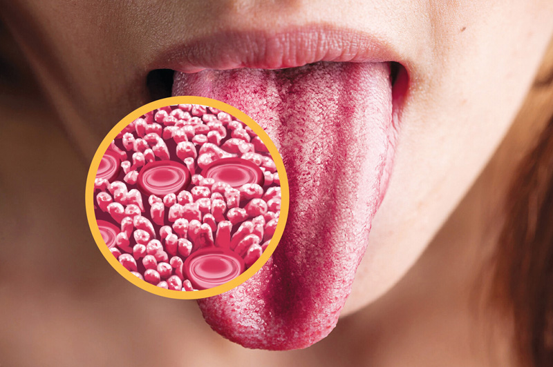 • Die Zunge klebt am Gaumen, was das Schlucken erschwert.